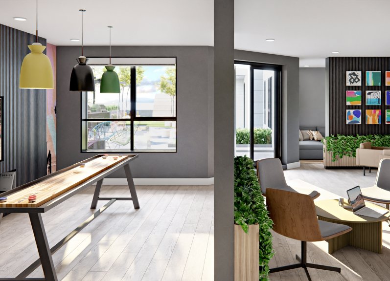 ACE is a six-storey condominium development by Wesgroup located in Vancouver’s Grandview-Woodland neighbourhood at 1680 East 12th Avenue. The project offers 61 modern homes with thoughtfully designed shared amenities, including work hubs, garden plots, and family-friendly outdoor spaces. ACE is scheduled for completion in early 2026 and is situated steps from Commercial Drive.
