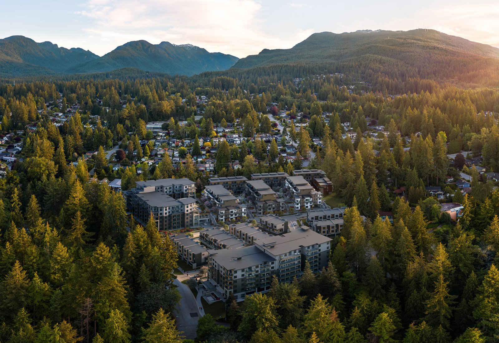 Located near Mount Seymour, the project features modern homes with thoughtfully designed layouts, outdoor amenities, and strong connections to nature.