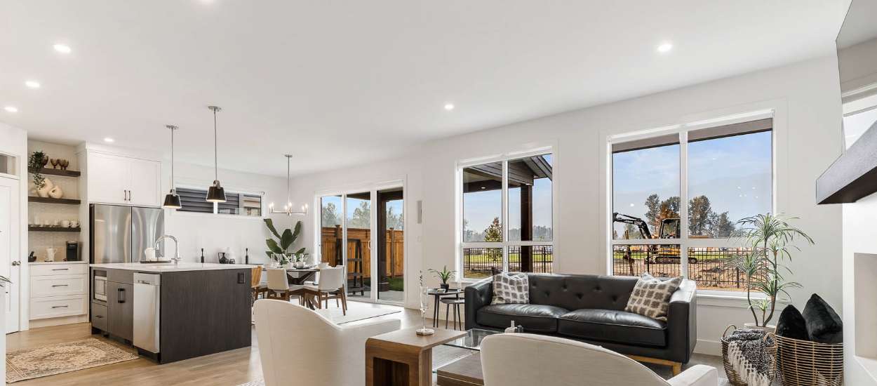 Cedarbrook in Chilliwack is a master-planned community by Westbow Group featuring a variety of residential options including Townhomes, Lane Homes, Trail Homes, and apartment living in The Banks. The Banks features a 6-storey building, and Townhomes have 10-foot ceilings. The development also includes rental housing.