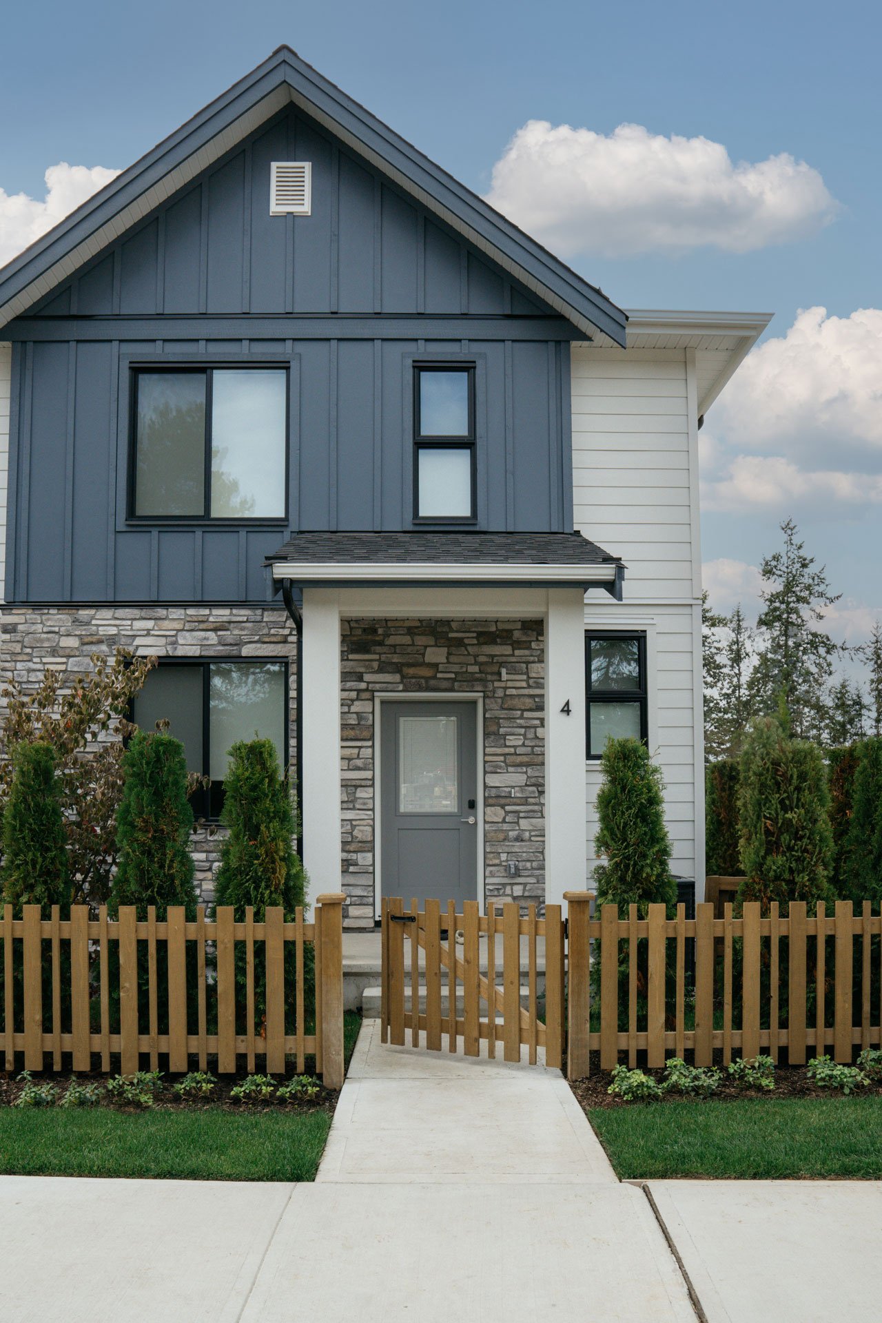 The project features 3-storey wood-frame townhomes with 3- and 4-bedroom layouts, designed for family living.