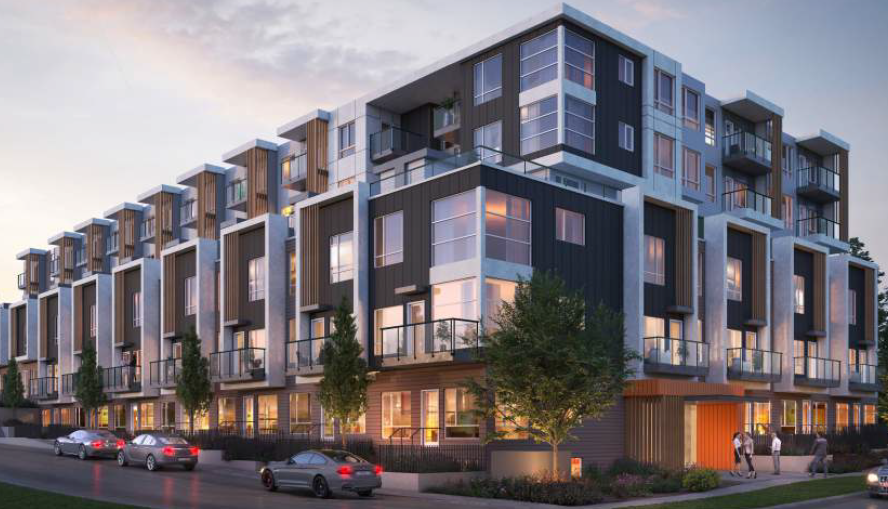 Harlowe in Surrey offers a mix of condominium and townhouse residences by Genaris Properties. The project features 9-foot ceilings and shared amenities, with Flat Architecture as the architect. Secured parking and bike storage are included.