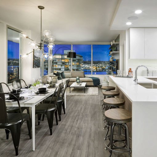 Ovation is a mixed-use development in Downtown New Westminster by Vintop Development, designed by GBL Architects. It features a 32-storey concrete residential condominium tower alongside an 8-storey non-market rental building and ground-floor commercial space.
