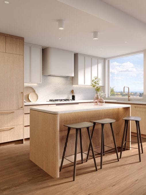 It offers a limited collection of thoughtfully designed 1-, 2-, and 3-bedroom homes in a five-storey building.