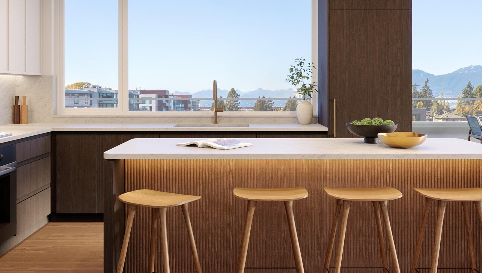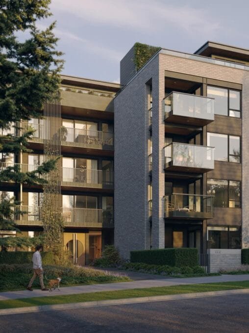 The project blends modern architecture with a quiet, park-side lifestyle in the Cambie Corridor.