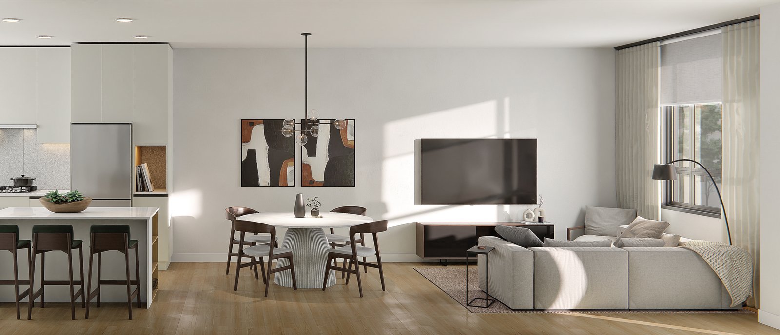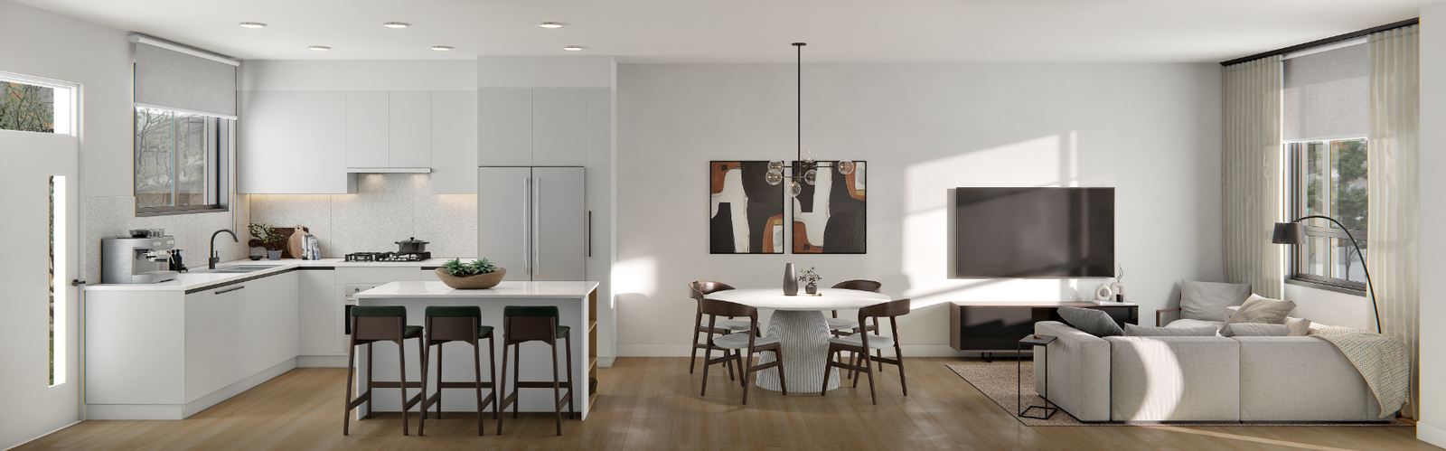 The project is developed by Foster Living and offers family-oriented townhome residences.